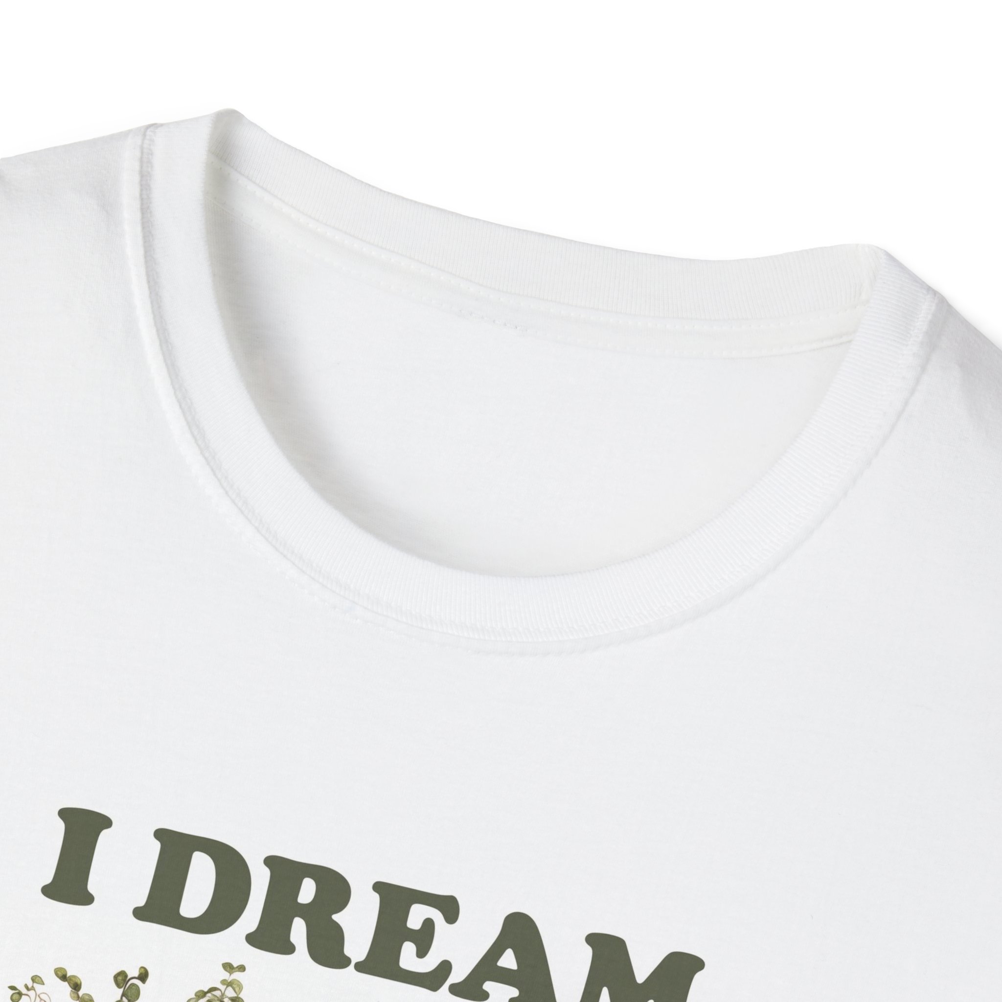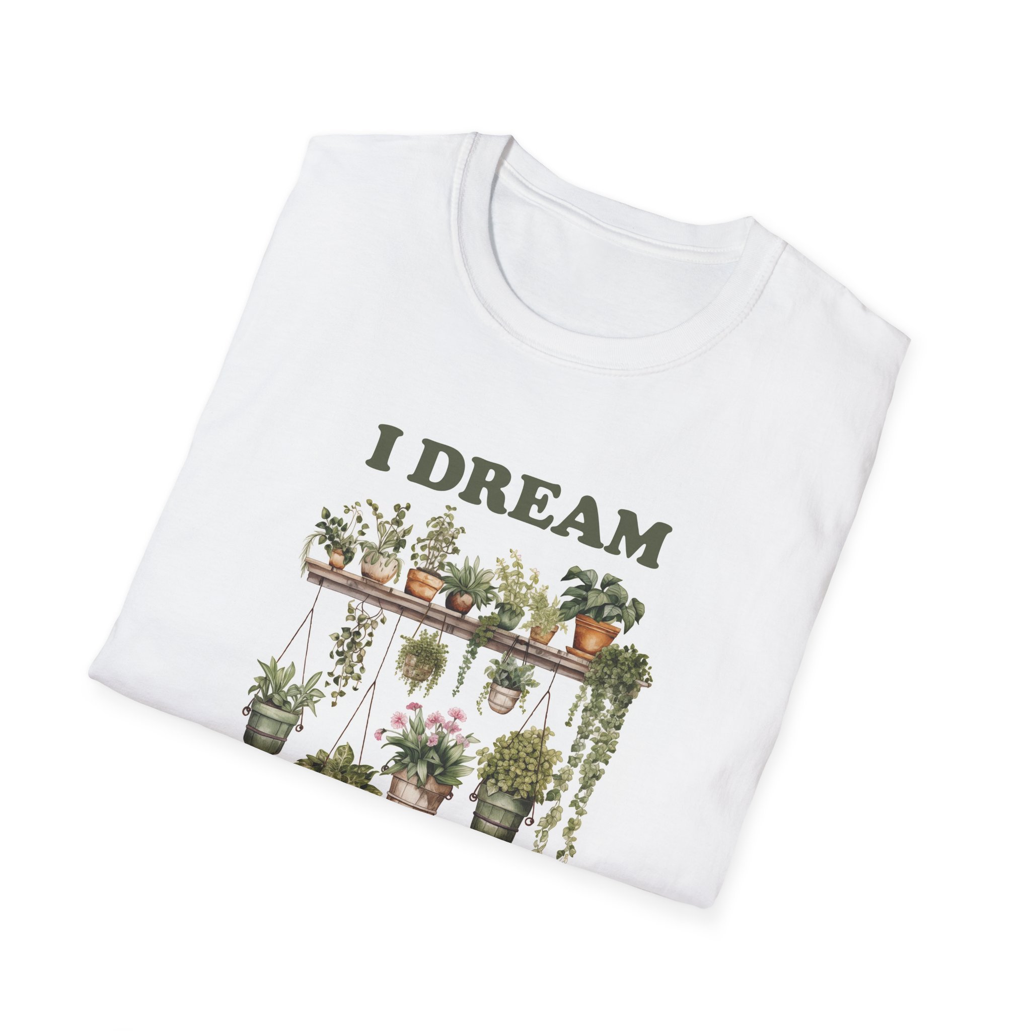 This I Dream of Plants Adult Unisex Softstyle T-Shirt is made with 100% midweight US cotton, offering a soft and comfortable feel. The shoulders have twill tape for improved durability. There are no side seams. The collar is made with ribbed knitting to prevent curling damage.