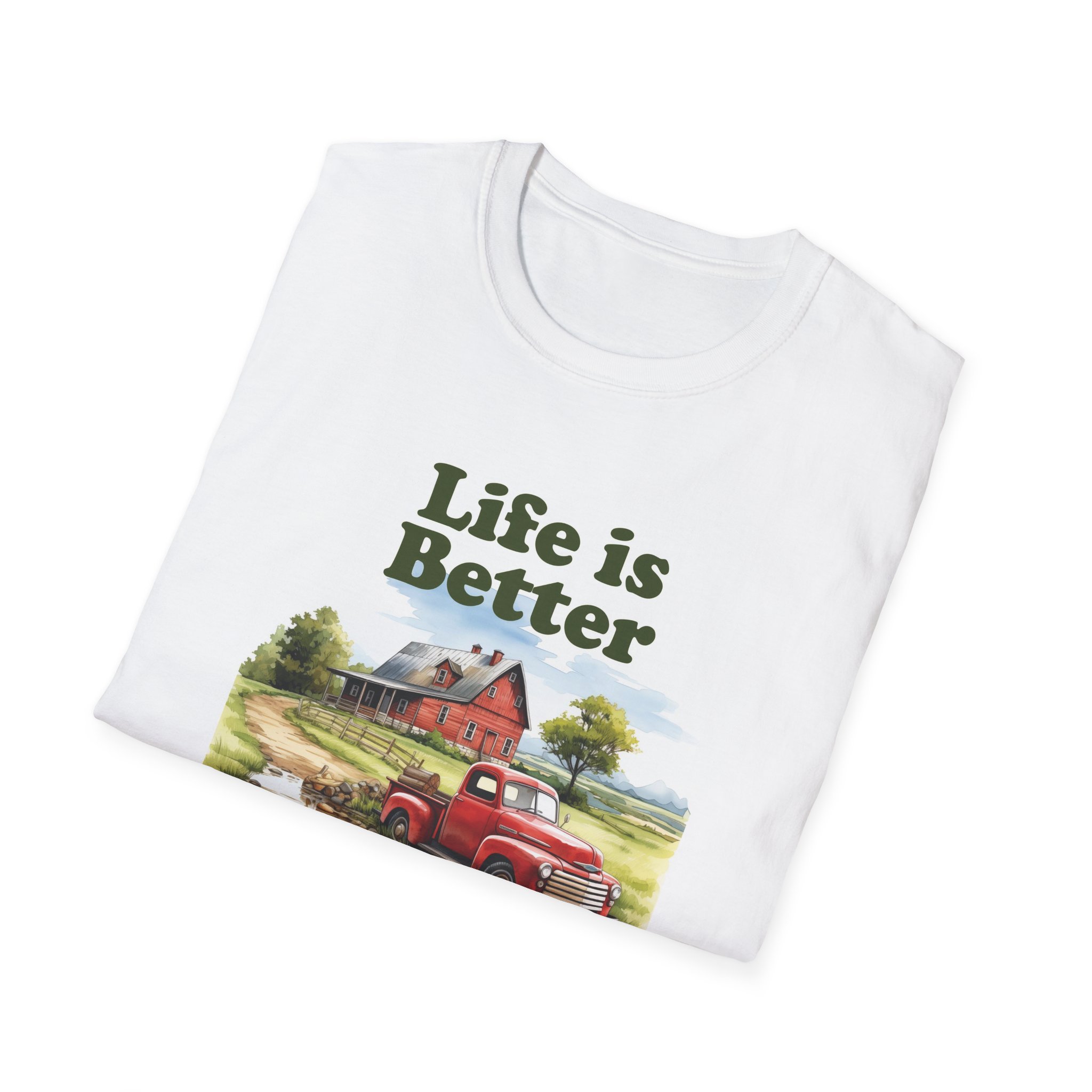 This Life is better on the Farm Unisex Softstyle Adult T-Shirt is made with 100% midweight US cotton, offering a soft and comfortable feel. The shoulders have twill tape for improved durability. There are no side seams. The collar is made with ribbed knitting to prevent curling damage.